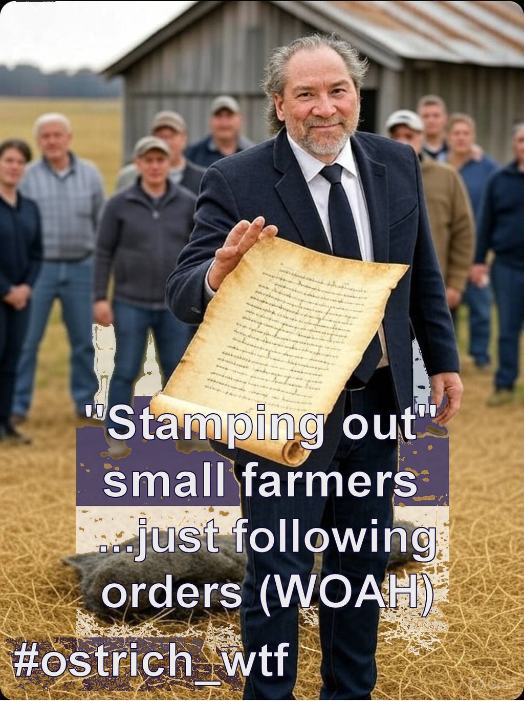 Raising awareness by sharing #ostrich_wtf MEMEs can help pressure the CFIA to further investigate the healthy Ostrich flock @ostrichfarmbc near Edgewood, BC.