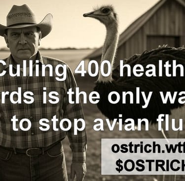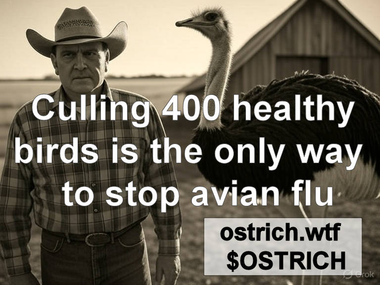 By trading or collecting $OSTRICH you’re raising awareness for #ostrich_wtf By sharing MEMES and commenting you are joining the passionate #ostrich_wtf community that wants to see a small farm’s Ostrich flock survive.